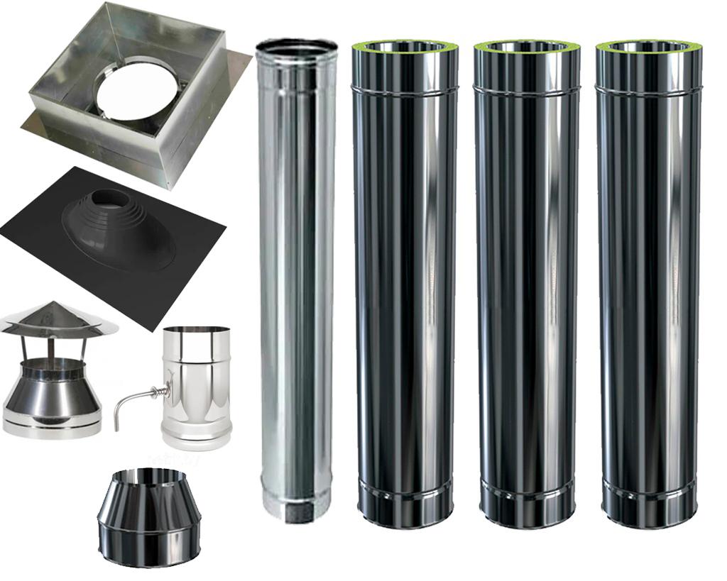 Комплект дымохода — это готовое изделие с изоляцией для самостоятельного пожаробезопасного подключения к банной печи, общей высотой 4 метра с проходом через кровлю. Лаконичный внешний вид позволяет монтировать сэндвич-трубы без ущерба дизайна загородного дома.