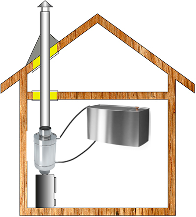 Предусмотреть дополнительную изоляцию прохода через деревянные поверхности: потолочное перекрытие или стену, кровлю, а также огнезащиту стен парильного помещения!
