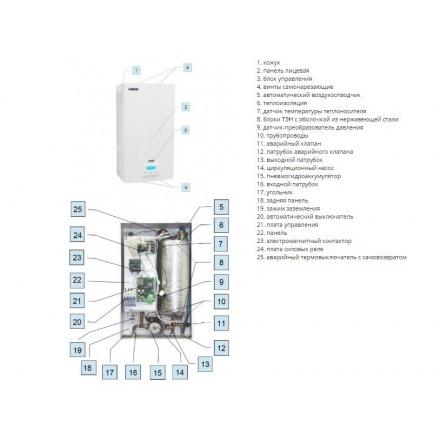 Электрокотел ЭВАН EXPERT 27 оснащен всем необходимым для надежной и удобной эксплуатации. Наличие циркуляционного насоса и расширительного бака обеспечивает равномерное распределение тепла по всему помещению и стабильное давление в системе отопления.