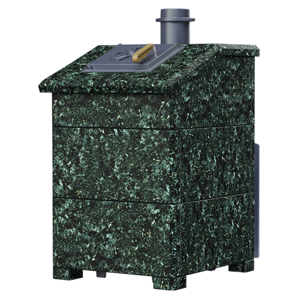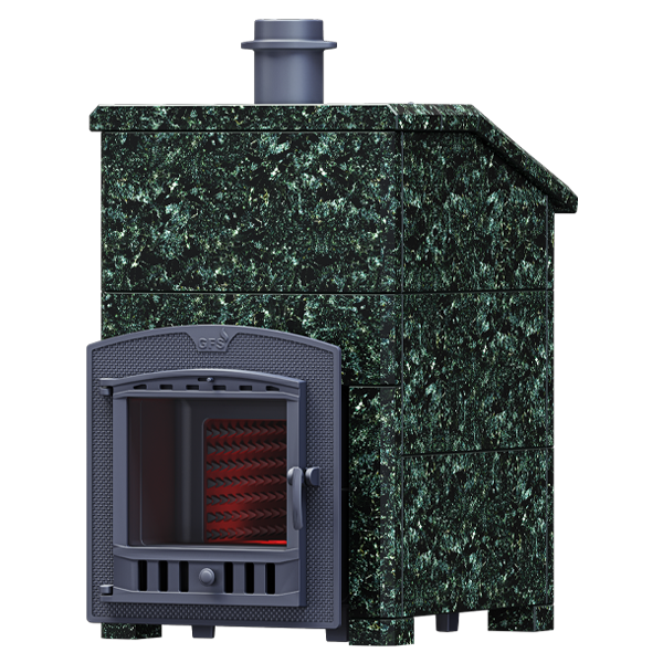 Облицовка закрывает корпус топки со всех сторон, имеет выходы для топливника, дымоходной трубы и подкидной дверцы.