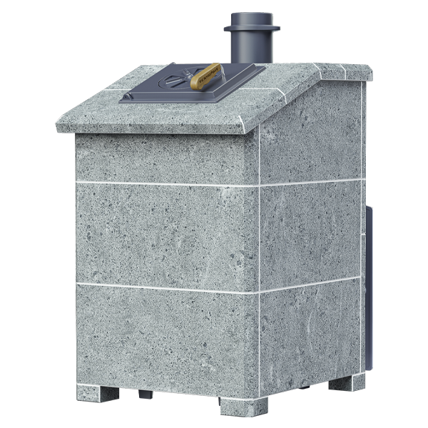 Облицовка представляет собой сборную конструкцию, состоящую из каменных плит толщиной от 30 до 60мм. Для крепления плит используются металлические планки вставляемые в пазы смежных плит. Внутренняя поверхность всех плит находится на расстоянии от 10 до 50мм от корпуса топки образуя пазухи, позволяющие воздуху циркулировать между облицовкой и топкой.
