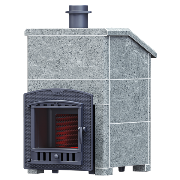 Облицовка закрывает корпус топки со всех сторон, имеет выходы для топливника, дымоходной трубы и подкидной дверцы.