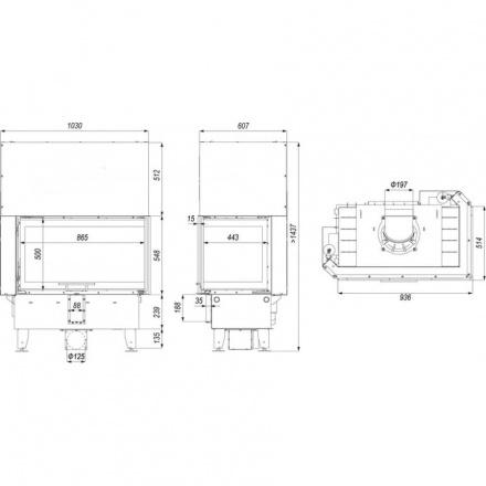 Изготовленная из высококачественной стали, топка имеет прочную и надежную конструкцию. С габаритами 1437х1030х607 мм и весом 306 кг, она обеспечивает стабильную работу и долгий срок службы. Подключение дымохода сверху облегчает процесс монтажа и эксплуатации.