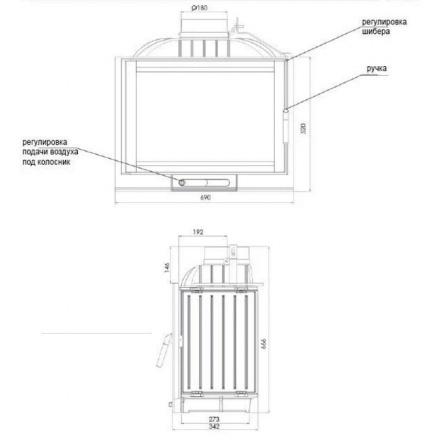 С площадью обогрева до 130 квадратных метров, эта топка обеспечивает равномерное распределение тепла по всему помещению. Габариты 665х690х342 мм и вес 102 кг делают ее компактной и легкой в установке.