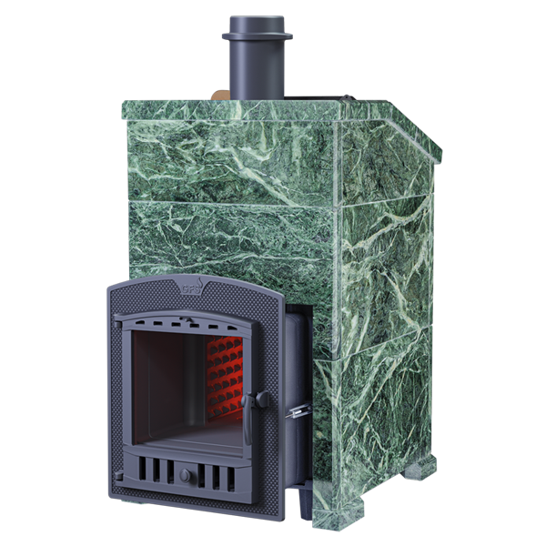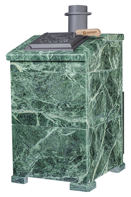 GFS-ЗК - печь с усиленной каменкой большей массы, с единым углублением внутрь топки для дополнительной укладки чугунного заряда. Теплосъемные шипы, со стороны горения пламени, в разы увеличивают площадь соприкосновения огня с каменкой и ускоряют передачу тепла, а также способствуют лучшему дожигу смешивая потоки пламени и воздуха поступаемого из воздушника. Эти усовершенствования значительно повышают мощность парообразования печи и выдают большее количество пара при непрерывной подаче воды. Каменка печей GFS-ЗК является незаливаемой.В комплект входит: