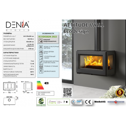 Настенная печь-камин Denia Attitude Wall купить в Молодечно с доставкой и рассрочкой платежа. -