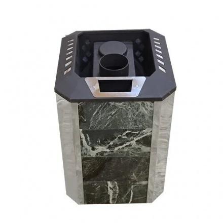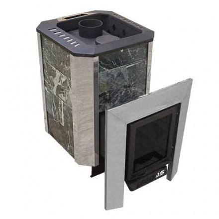 Дверца печи оснащена стеклом, что позволяет наслаждаться видом огня и добавляет уют в вашу баню. Протопка печи осуществляется из смежного помещения, что удобно и безопасно. Комплектация в камне змеевик придает печи эстетичный вид и обеспечивает дополнительную теплоемкость, что помогает дольше сохранять тепло.