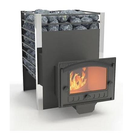 Объем парилки составляет 16-18 м3, что достаточно для создания комфортной атмосферы в небольших и средних парных помещениях. Панорамная дверка позволяет наслаждаться красивым видом на пламя, создавая особую атмосферу релаксации и уюта.