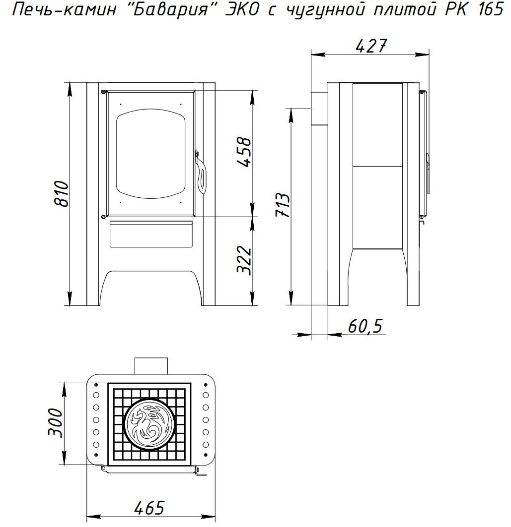 С габаритами 810х465х427 мм и весом 78 кг, печь-камин Бавария Эко с плитой легко устанавливается в вашем доме или даче, не занимая много места.