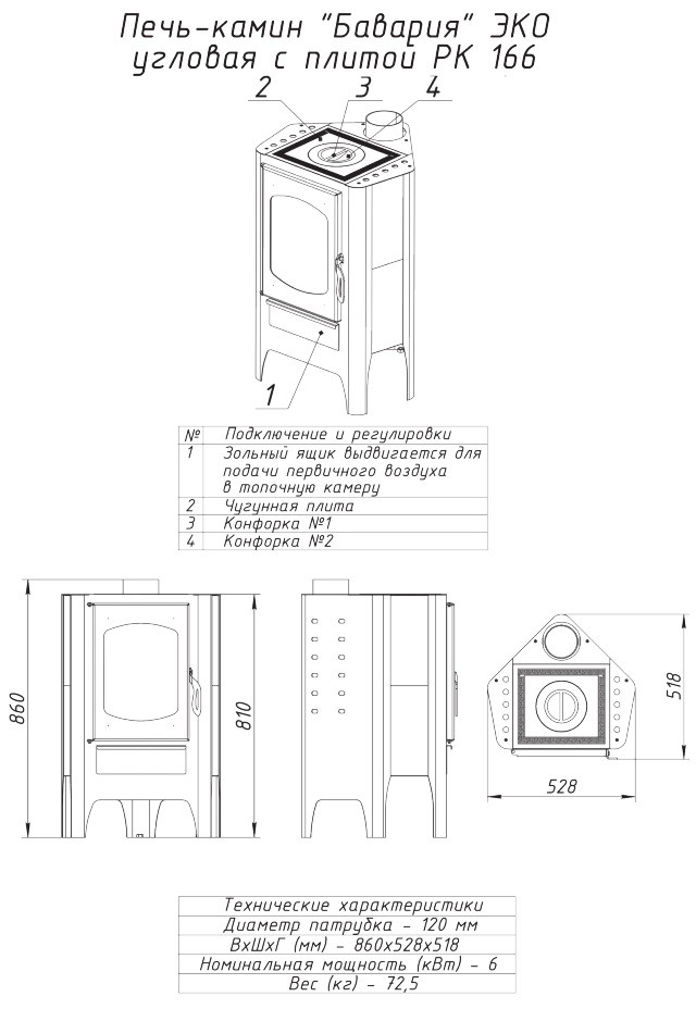 Уникальная возможность подключения дымохода сверху обеспечивает удобство монтажа, а наличие варочной плиты с одной конфоркой позволяет приготовить разнообразные блюда прямо на печи.