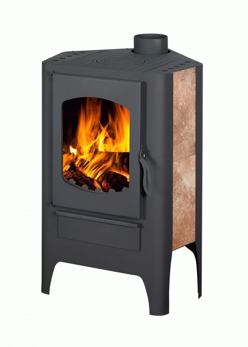 Изготовленная из прочной стали, топка печи снабжена стеклянной дверцей, которая позволяет наслаждаться видом пламени и контролировать процесс горения. Габариты 860х528х518 мм и вес 73 кг делают ее компактной и легкой в установке.