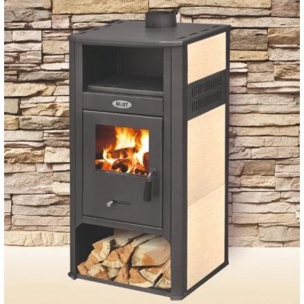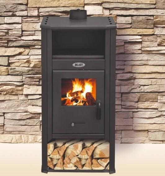 Основным топливом для этой печи-камина служат дрова, что делает её экономически выгодным и экологически чистым выбором. Топка изготовлена из прочной стали, что гарантирует долговечность и устойчивость к высоким температурам. Дверца со стеклом позволяет наблюдать за огнем, создавая уютную атмосферу в помещении.