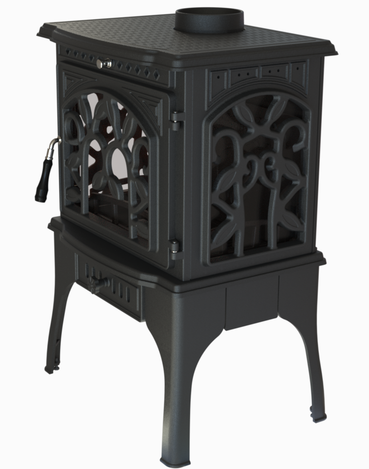 Эта печь работает на дровах, что делает ее идеальным выбором для создания атмосферы уюта и тепла в вашем доме или на даче. Материал топки из чугуна гарантирует эффективную передачу тепла и долгий срок службы. Уникальность модели проявляется в панорамной дверце, которая создает великолепный обзор на огонь, придавая интерьеру особую изысканность.