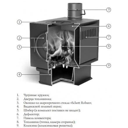 Компактные размеры этой печи позволяют размещать ее в самых небольших помещениях. Геометрия топки и боковые конвекторы обеспечивают экономичное отопление помещения.